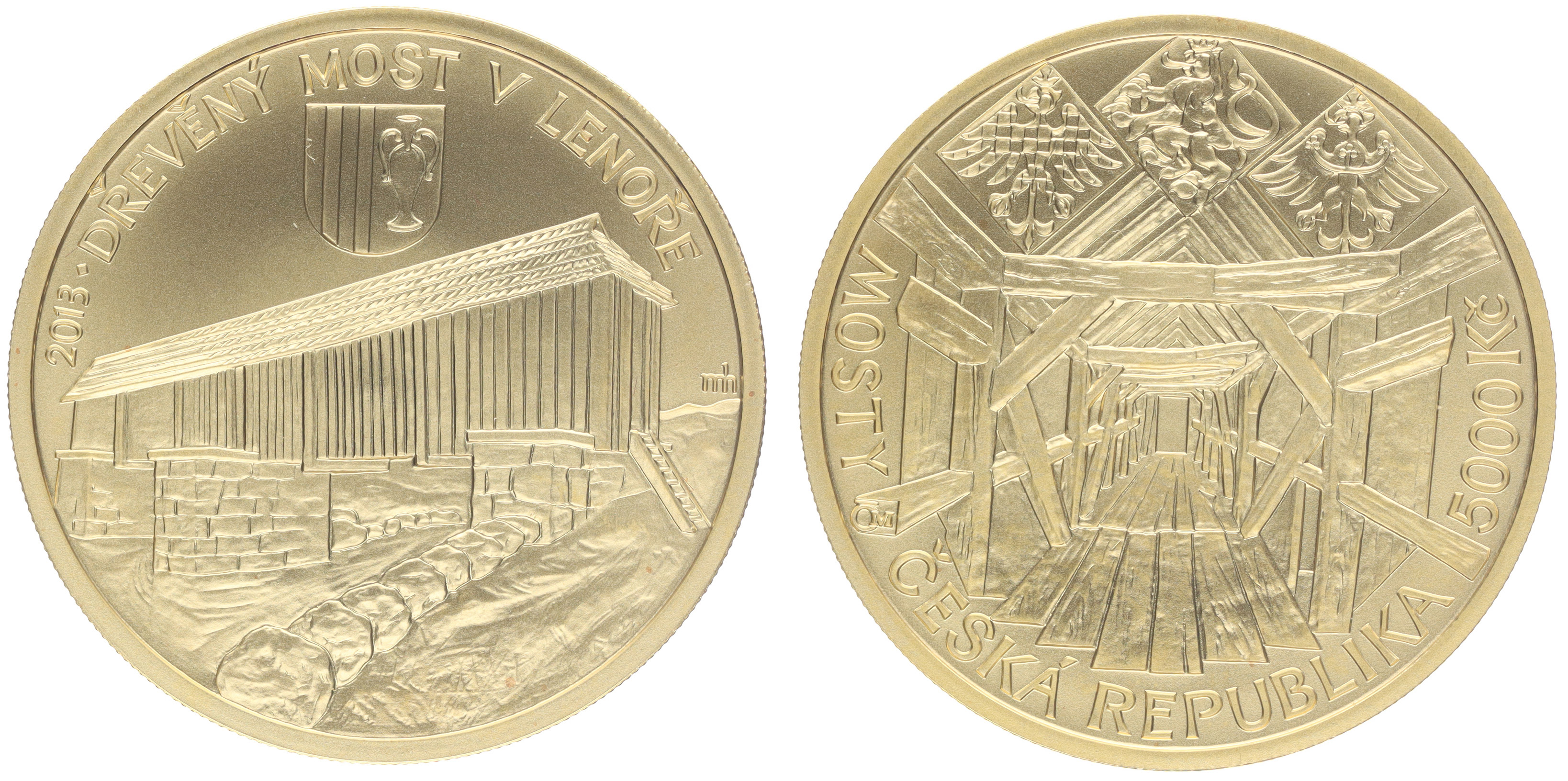 5000 Koruna 2013 - dřevěný most v Lenoře náklad pouze 2.600 ks_orig.etue + kapsle + certifikát