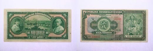 100 Kč 1920, série M, B.16a, Hej.16a, _v přehybu natrž. 2mm "neperf."