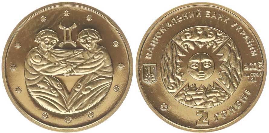 2 Hřivny 2006, blíženci Au 999,9, 14 mm, 1,24 g, náklad 10.000 ks, KM.406 _orig.kasple + certifikát (č.0002030)