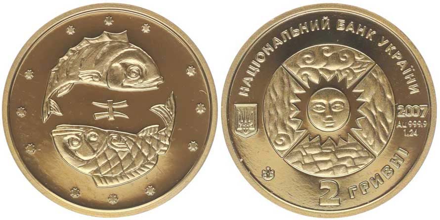 2 Hřivny 2007, ryby Au 999,9, 14 mm, 1,24 g, náklad 10.000 ks, KM.450 _orig.kasple + certifikát (č.0001952)
