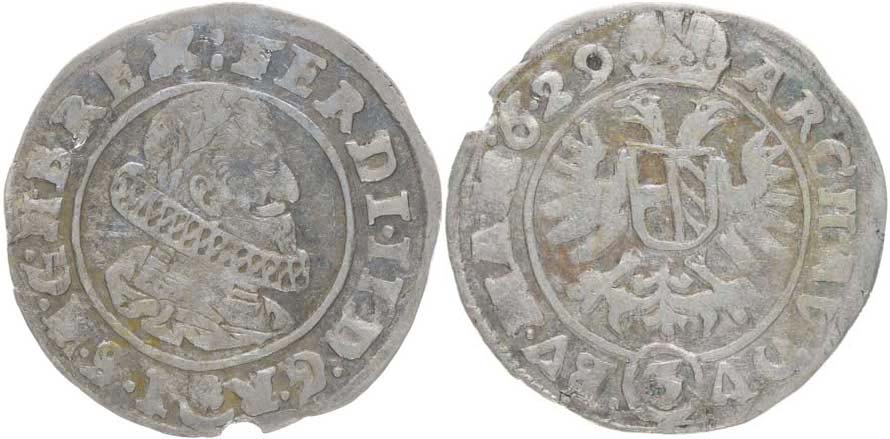3 Krejcar 1629, Praha-Hübmer, jako J.28d, jako MKČ.760_hr.raž.