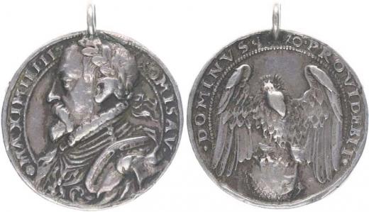 Mince na podívanou (Schaumünze) 1570, poprsí zleva, opis / orel se zeměkoulí v pařátech, opis, Sign.L.Richter, Ag 25 mm, 7,27 g LG.II/110, Husz.51, Do.1233_dob.ouško R!