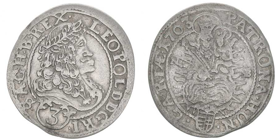 3 Krejcar 1703 NB, Velká Baňa, Nech.1592, Hus.1474, Her.1622_R!