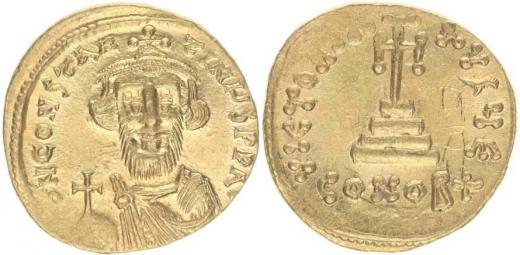 AV Solidus, císař čelně, opis / kříž na podstavci, opis VICTORIA AVG - CONOB, 4.45 g, Ra.1521pod.