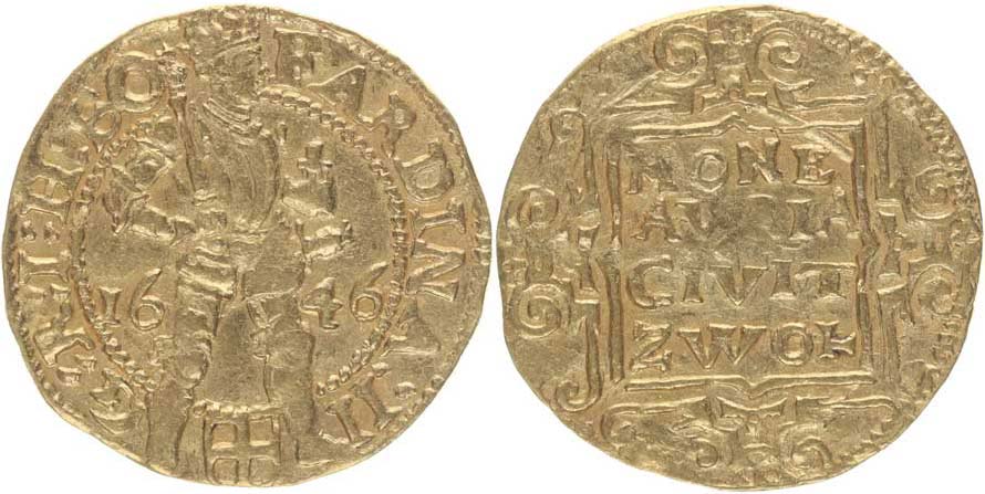 Dukát 1646 - s titulem Ferdinanda II. (opis FARDINA II.) Fr.81, KM.34_dr.zvln. R!