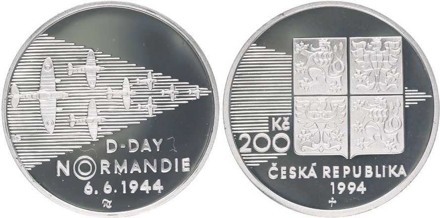 200 Kč 1994 - 50 let vylodění spojenců v Normandii _orig.etue + kapsle + certifikát