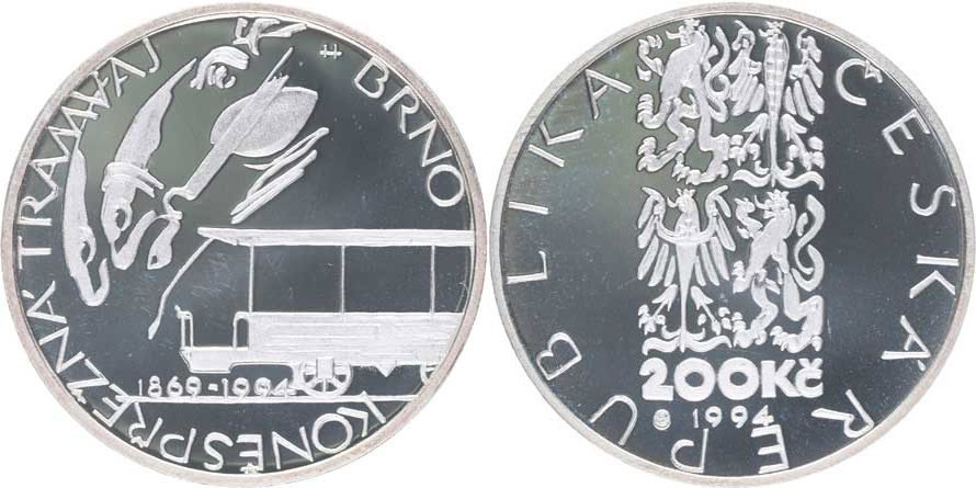 200 Kč 1994 - výročí první koněspřežné tramvaje _orig.etue + kapsle + certifikát