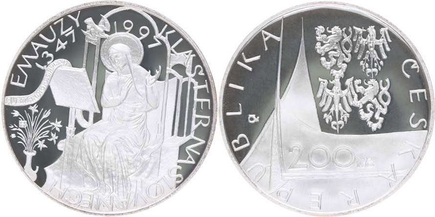 200 Kč 1997 - klášter Emauzy_orig.etue + kapsle + certifikát