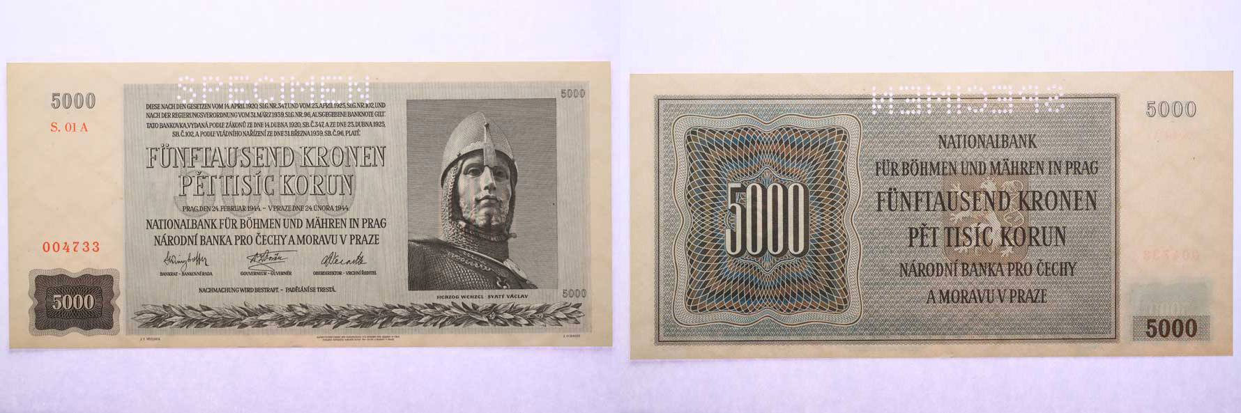 5000 Koruna 1944 - série 01A, B.41(45)_"SPECIMEN"