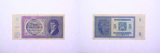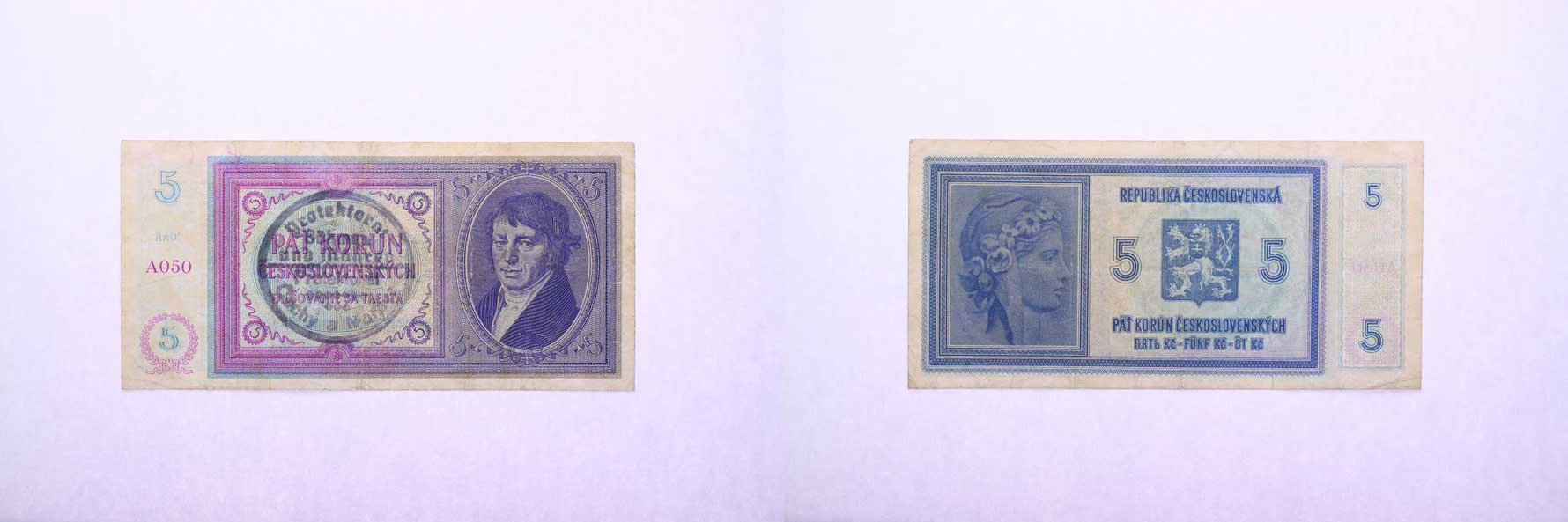 5 Koruna b.l. - ruční přetisk, s.A050, B.29a(31a), Hejz.31a_"neperf."
