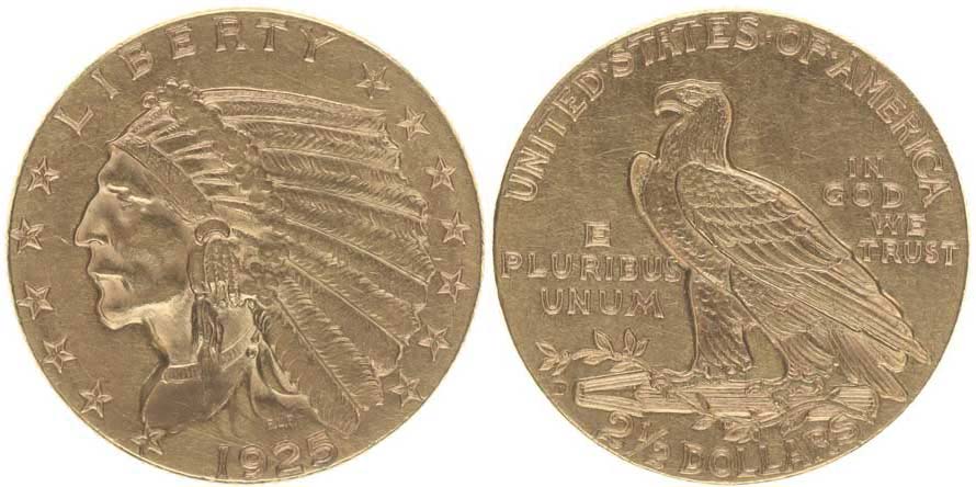 2 1/2 Dolar 1925 - hlava indiána, Y.53