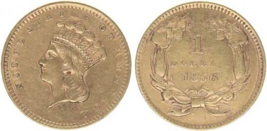 1 Dolar 1856 - malá hlava indiána, Y.50