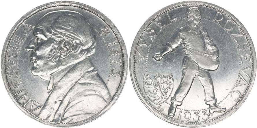 Antonín Švehla - Vyšel rozsévač, 1933 Poprsí zleva, opis / rozsévač, český znak, opis, Sign., Punc. 987, Ag 30 mm, 10.15 g, PŠ.140, Boh.96c