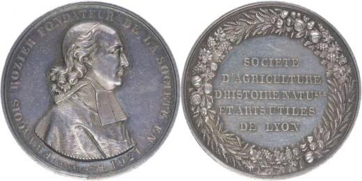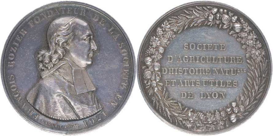 Lyon - Francois Rozier - zakladatel zemědělské společnosti v r.1761, poprsí zprava, opis / 5řádk. nápis ve věnci Sign. Caque.F. 1834, Ag 34 mm, 13,82 g
