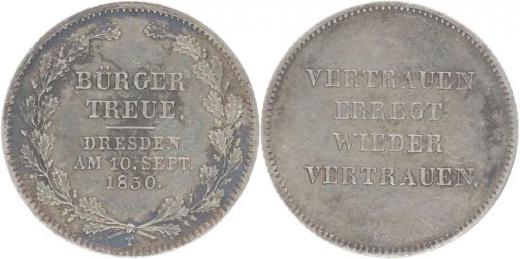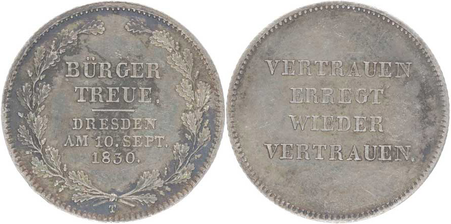 Nesign. - medaile za občanskou věrnost 10.9.1830 4řádk.nápis / 5řádk.nápis ve věnci, Ag 20 mm, 3,12 g_R!