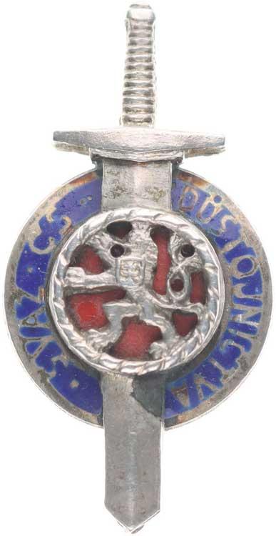 ČSA - odznak příslušníka Svazu čs.důstojnictva z let 1918-38, Červenomodrý smalt, Punc.900, Ag, 12,7x25 mm, Sign.Pichl Praha Koun.14a_šroubovací na matici