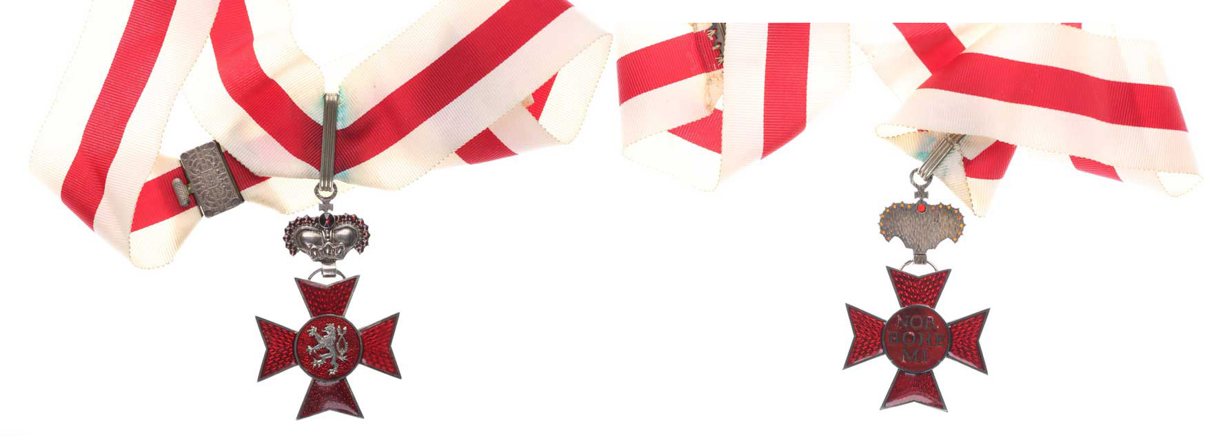Rytířský řád sv.Václava - EOSW (z let 1993 - 2005) - I.řádové třídy Punc.925, Ag s převýšenou knížecí korunou s českými granáty, Punc.900, Ag, DP 2003, str.102-106_orig.náhrdelní stuha