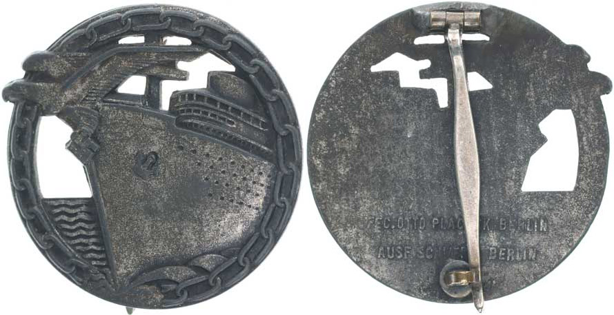 Válečný odznak pro posádky pomocných křižníků Nesign. (výrobce C.E.Juncker Berlin), Pozlac. a postř.tombak 44x56,8 mm, Nim.3925, znal.posudek přiložen_svislá připínací jehla R!