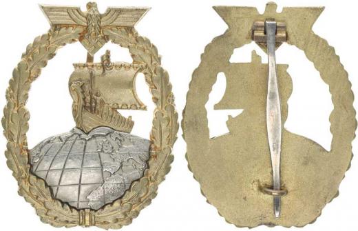 Válečný odznak za prolomení námořní blokády (z let 1943-45) Sign. na rev.: FEC OTTO PLACZEK BERLIN AUSF SCHWERIN BERLIN Válečný Zn kov 48,5mm, Nim.3932, znal.posudek přiložen_vodor.připínací jehla R!