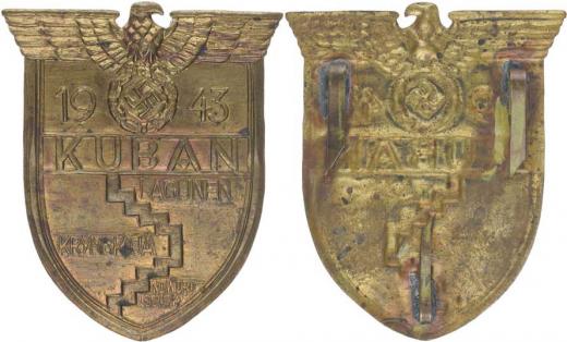 Kuban 1943 - rukávový štít, Bronz 51,5x62,4 mm Nim.3874_se třemi úchyty