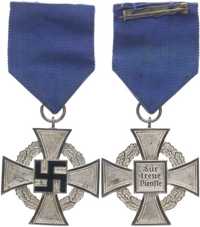 Služební vyznamenání - Za věrné služby II.stupeň za 25 let, Postř.bronz., lakov.svastika, Nim.3524, Niem.6.03.03-d _orig. modrá stuha