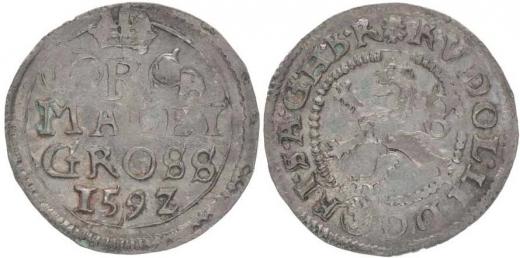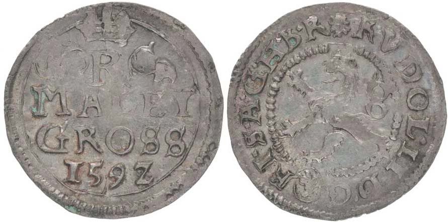Malý groš 1592, K.Hora-Herold, HN.1b (opis 7a), Ja.6b_dr.ned.