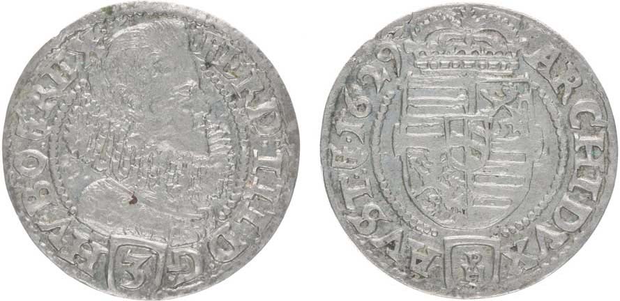 3 Krejcar 1629 PH, Petr Hema, Nech.113, MKČ.1335a