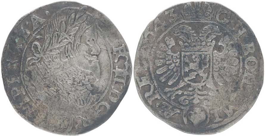3 Krejcar 1643, Jáchymov-Knobloch, J.5b, MKČ.1220_č.ned. R!