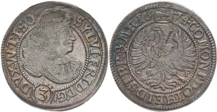 3 Krejcar 1674 SP, Sa.206/58, Kop.6208