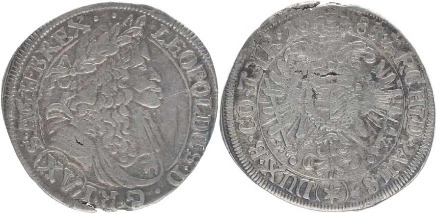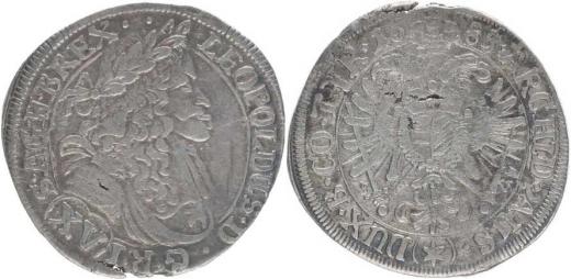 XV Krejcar 1662, Vídeň-Cetto, Nech.-, Höll.62.2.1/62.1.3, Her.- v rev. nepopsapný opis: ARCHI.D.AVS.D - VX.B:CO:TYR.1662 _RR!