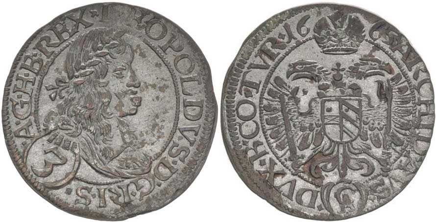 3 Krejcar 1665, Vídeň-Cetto, Nech.1963, Her.1312, typ bez stuh (jako u ražby 1666)_R!