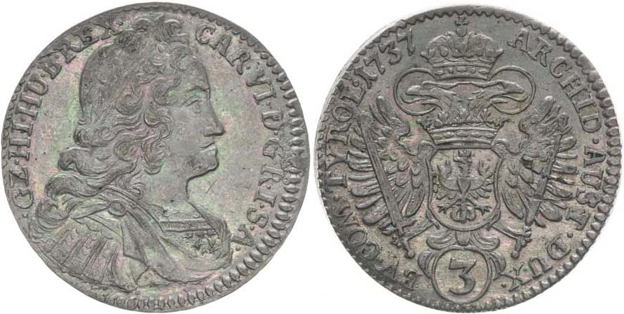 3 Krejcar 1737, Hall, M-A.237, Her.763