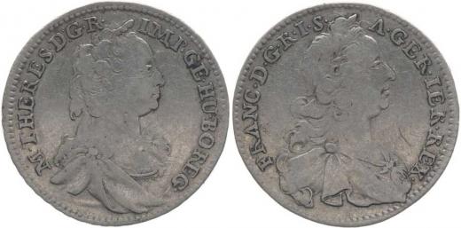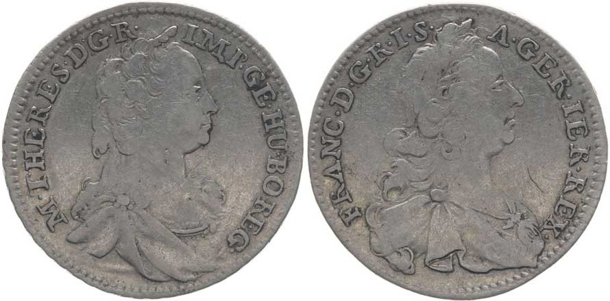 Ag odražek dukátu b.l., portrét Marie Terezie zprava, opis / portrét Frant.Lotrinského zprava, opis, 21 mm, 2,66 g, Eyp.530a_RR!
