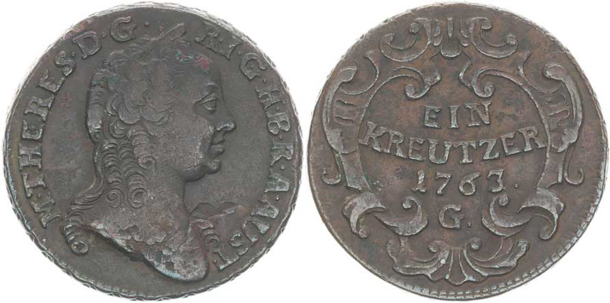 Cu Krejcar 1763 G, Štýrský Hradec, opis D.G. - R.I., N.41, Her.1593