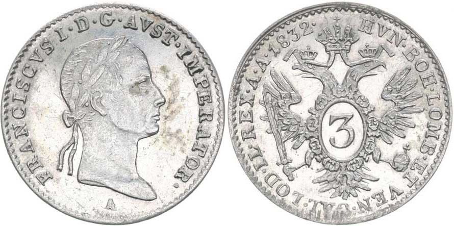 3 Krejcar 1832 A, Her.1009