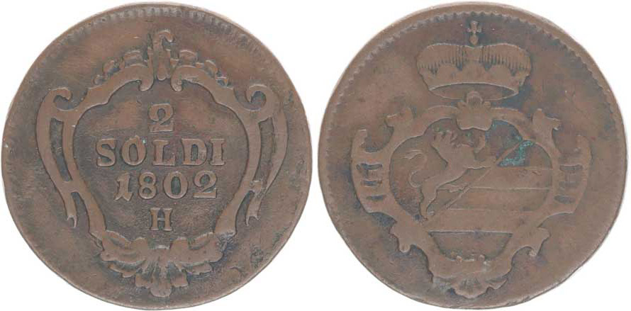 Cu 2 Soldi 1802 H, Günzburg pro Gorici a Gradišku