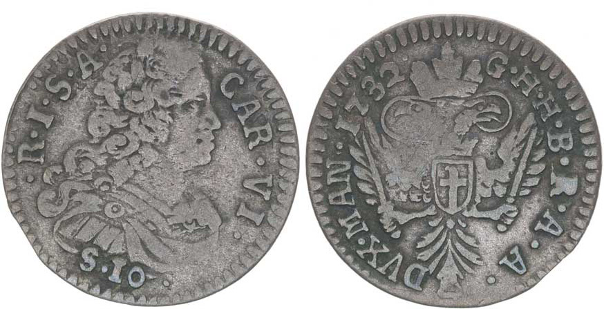 10 Soldi 1732 pro Mantovu, Her.1137, Jung.209/12, tab.42/2 _dr.ned. R!