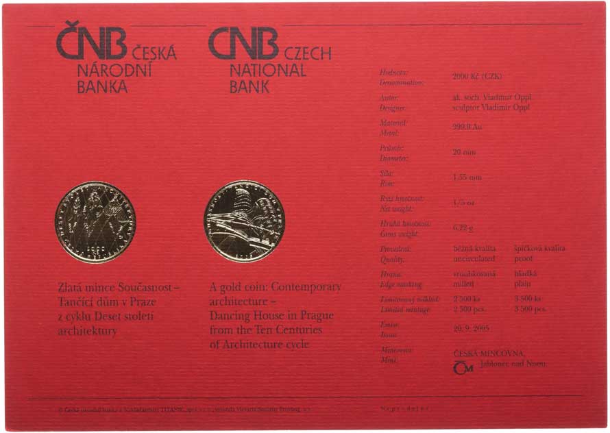 Karta (certifikát) pro minci 2000 Kč 2005 - Tančící dům