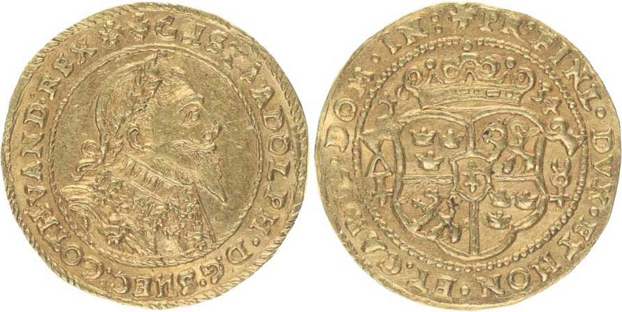 Gustav Adolf - dukát 1634 (ražen Švédy při obsazení města) KM.54, Fr.923_R!