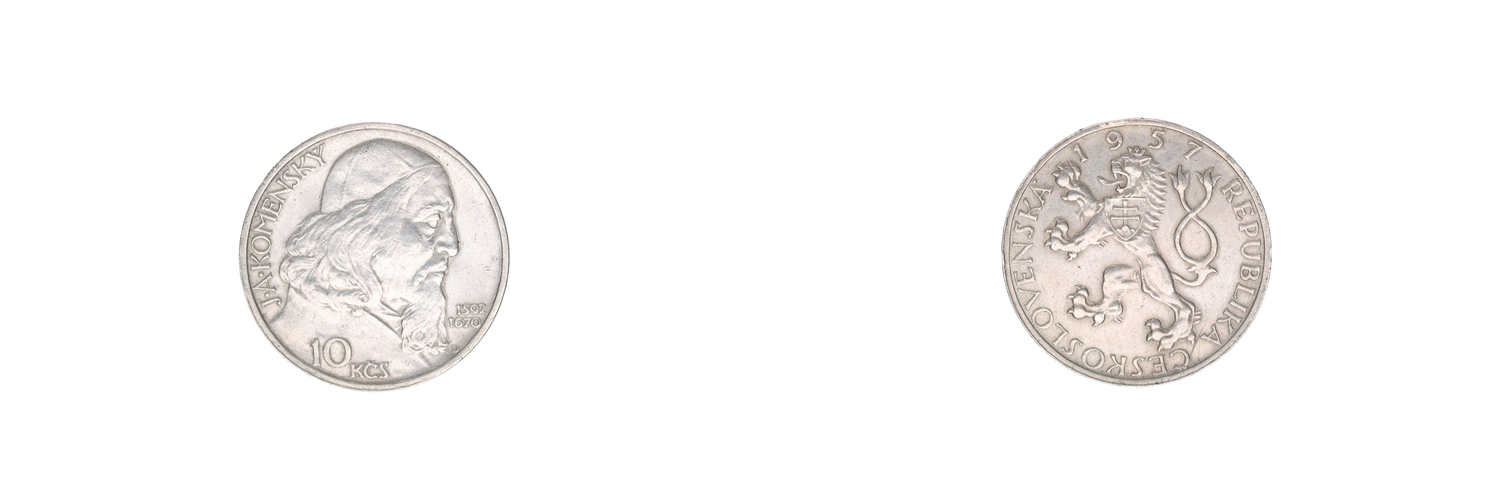 10 Kčs 1957 - Komenský, var. lev bez penisu_R!
