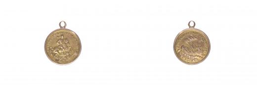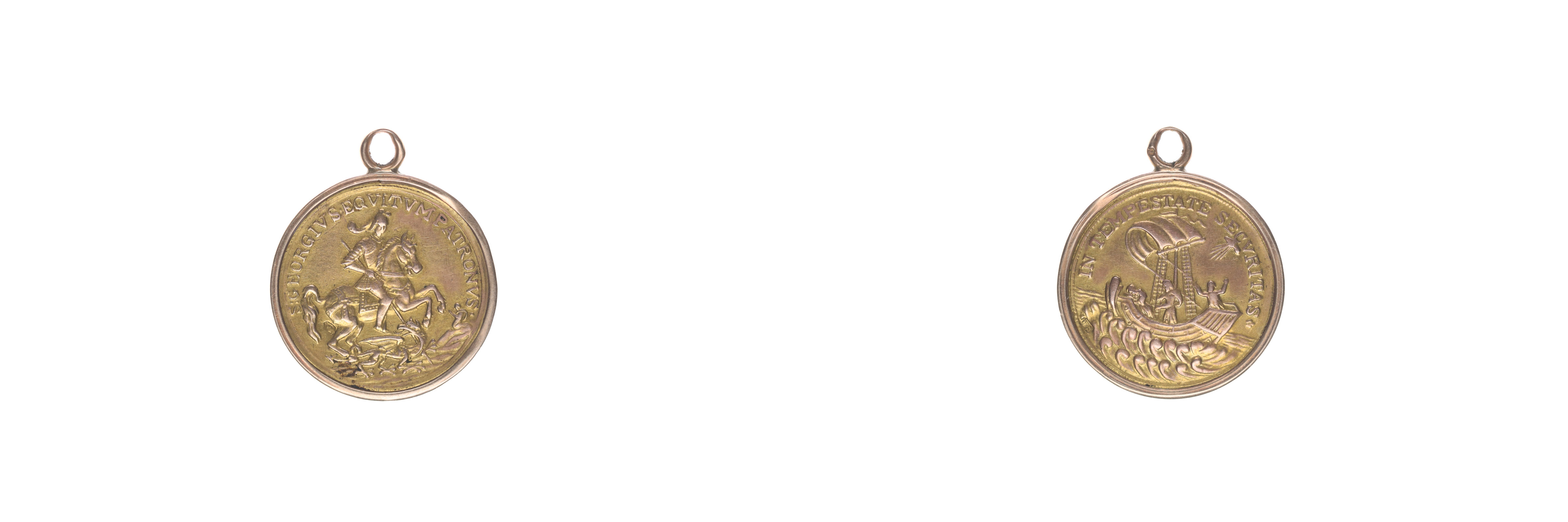 Kremnická svatojiřská medaile, b.l. Sv.Jiří na koni doprava, opis / loď na rozbouřeném moři, opis, Sign., Punc.JH, 4,70 g_v rámečku s ouškem