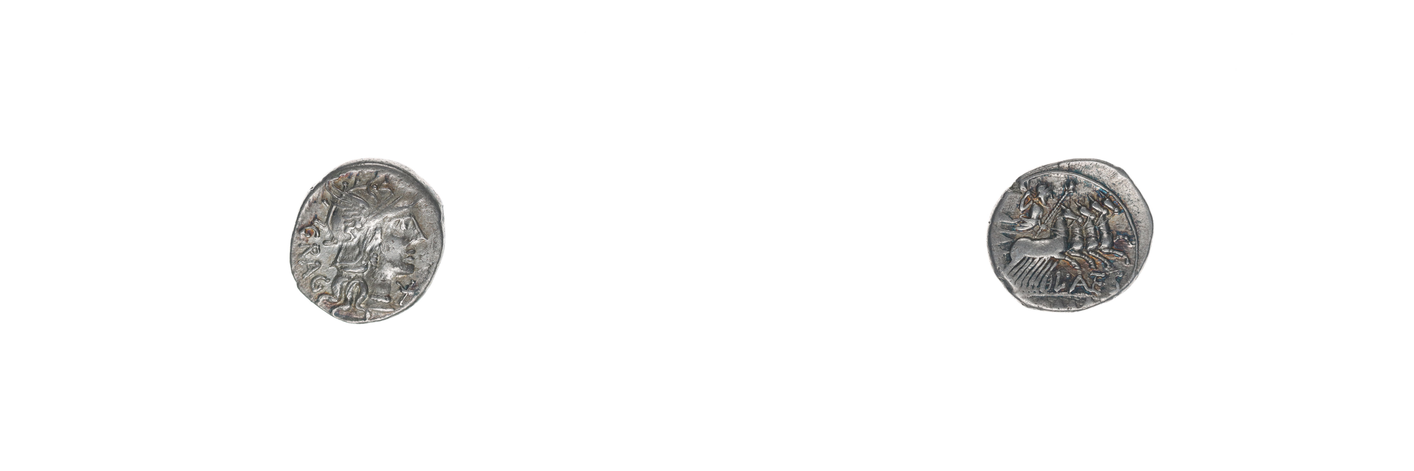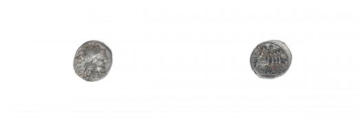AR denár, hlava Romy v přilbě zprava / Jupiter v quadrize zprava Cr.238/1, S.163, Seaby.451, Ves.1034