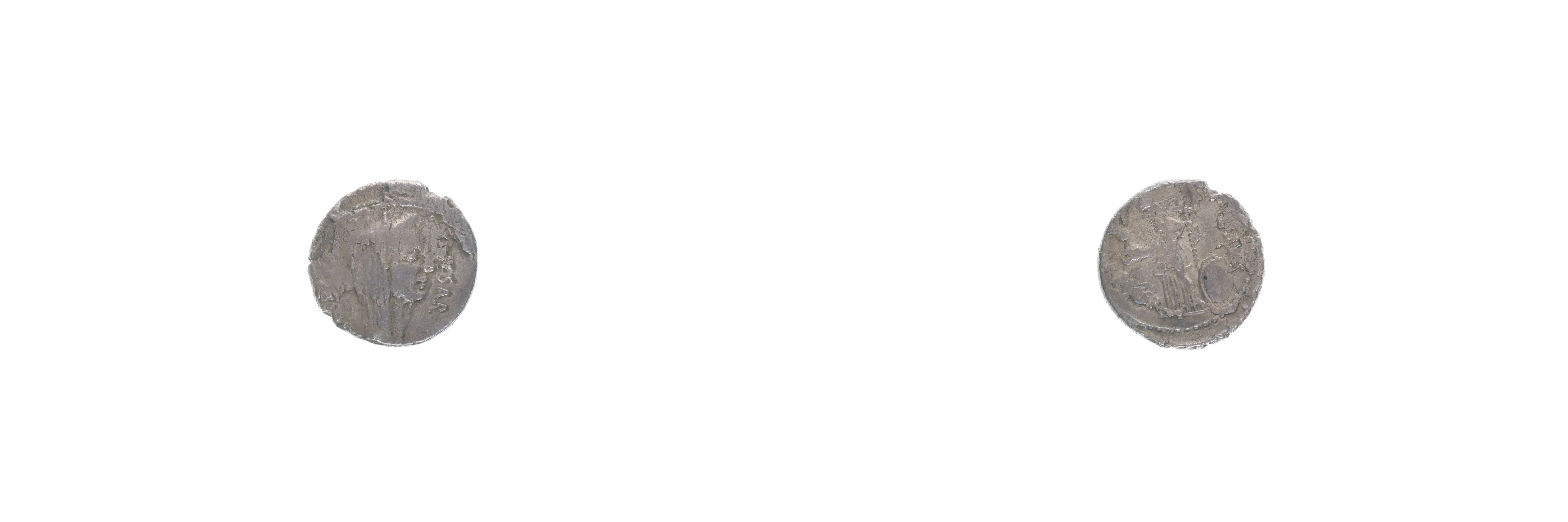 AR denár, hlava Caesara s etruským věncem / Venuše s Viktorií na ruce zleva, Craw.480/13, Ves.1375