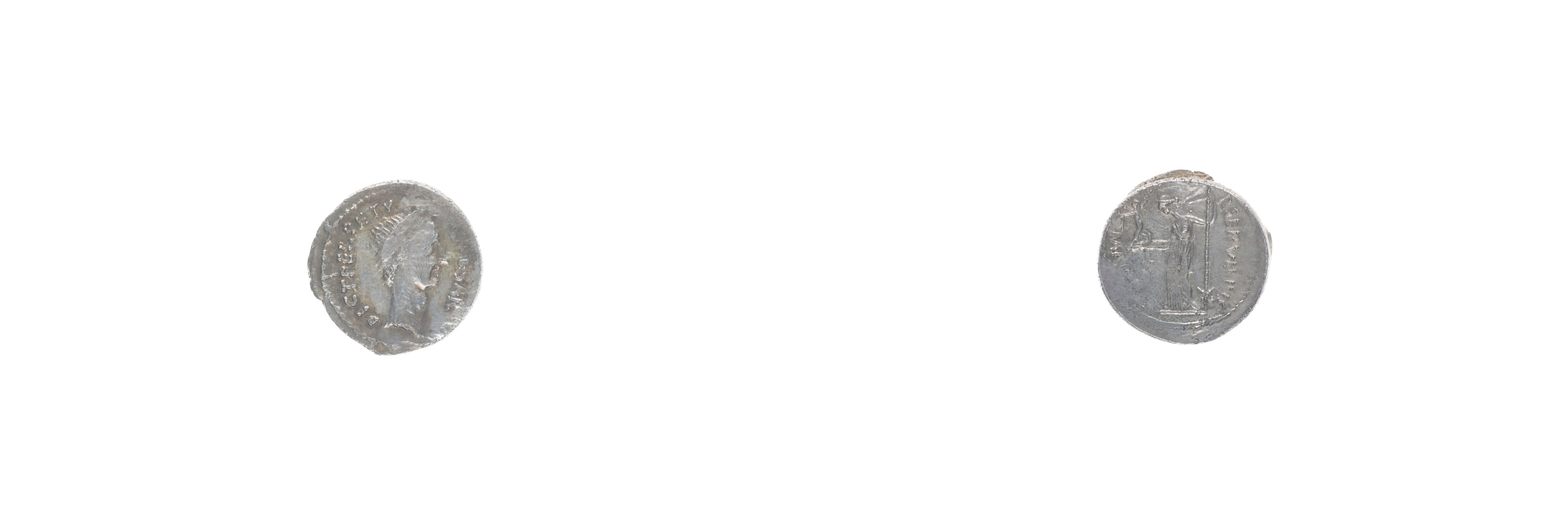 AR denár, hlava Caesara s etruským věncem / Venuše s Viktorií na ruce zleva, Craw.480/14, Ves.1376
