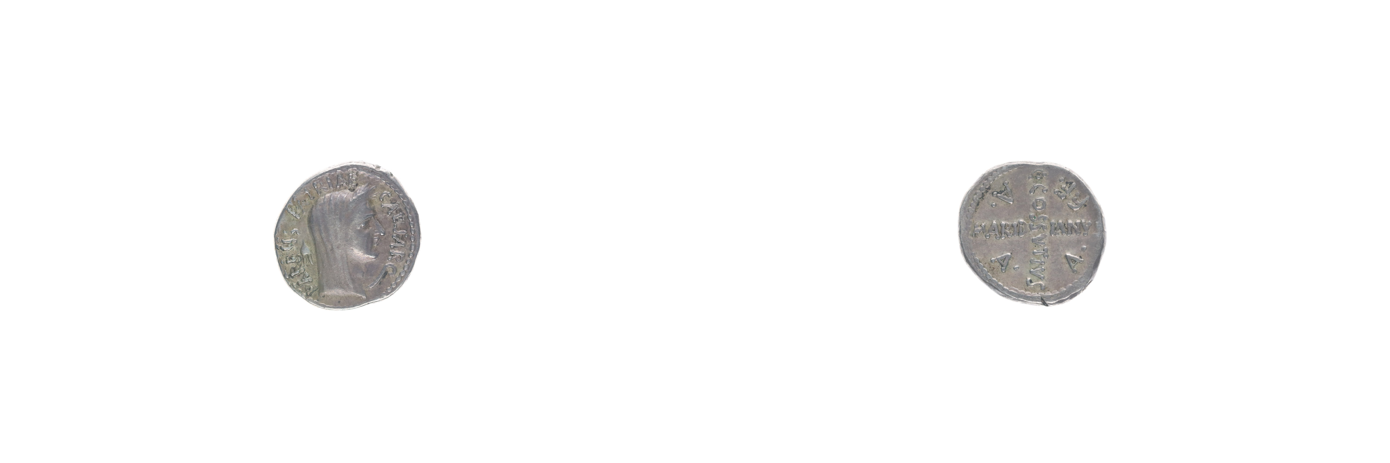 AR Denár, hlava Caesara zprava / nápis v kříži, opis Craw.480/19, Ves.1381