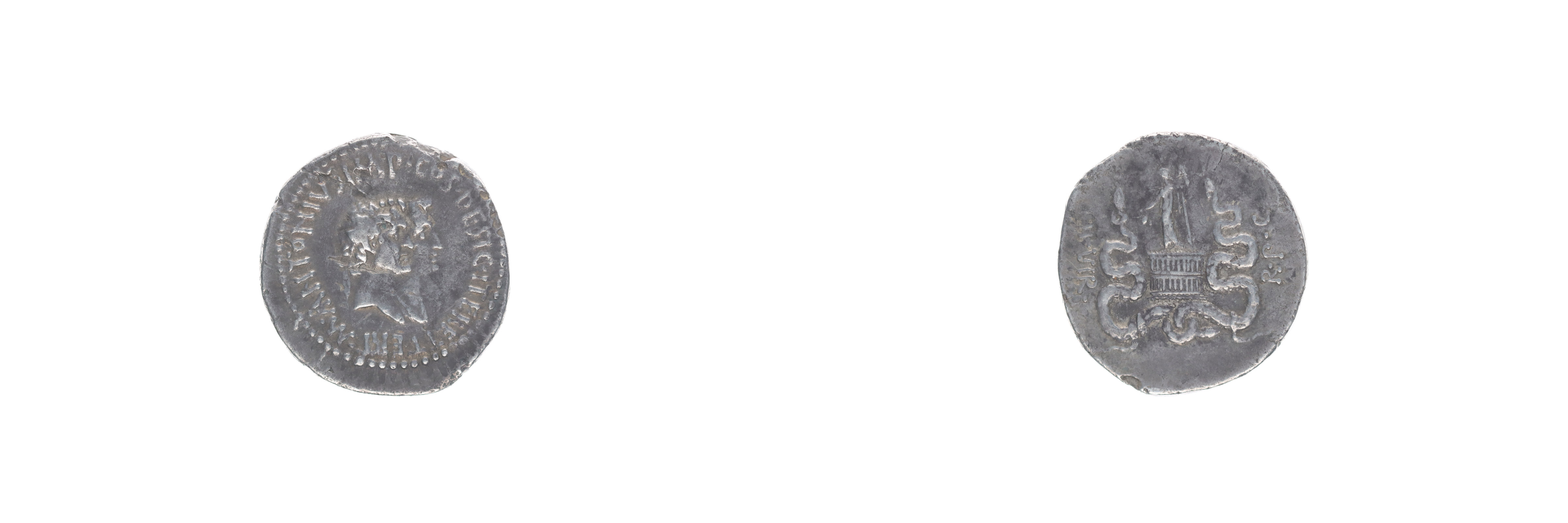 AR cistophorus (3 denár), dvouportrét zprava, opis / Cysta Mystica se stojícícm Dionysem, -minc.Efesos, Ves.1696, Syd.1198