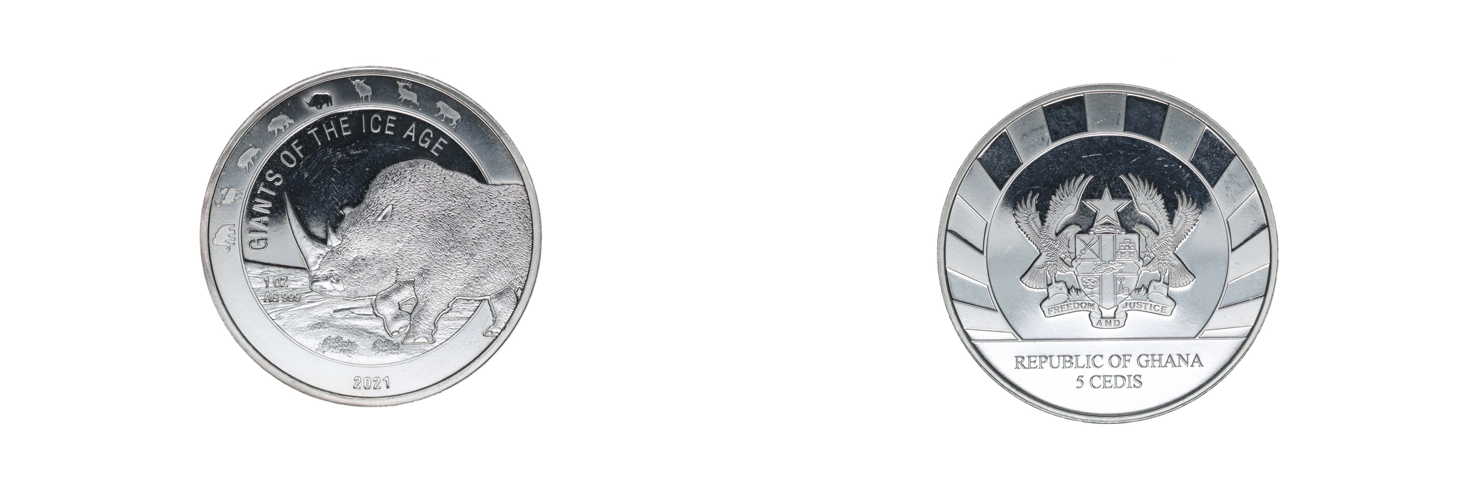 5 Cedis 2021, Ag unce 999, nosorožec srsnatý - ze série velká zvížata doby ledové_orig.kapsle