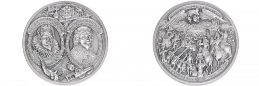 Medaile k 400.výročí bitvy na Bílé Hoře 8. listopadu 1620 Ve dvou medailonech Ferdinand II. a Fraidrich Falcký, zdobený okraj / bitevní scéna, opis, Sign., Punc.900, Ag 70 mm, 247,11 g nákl.60 ks_orig.repre etue