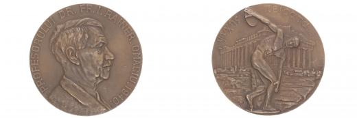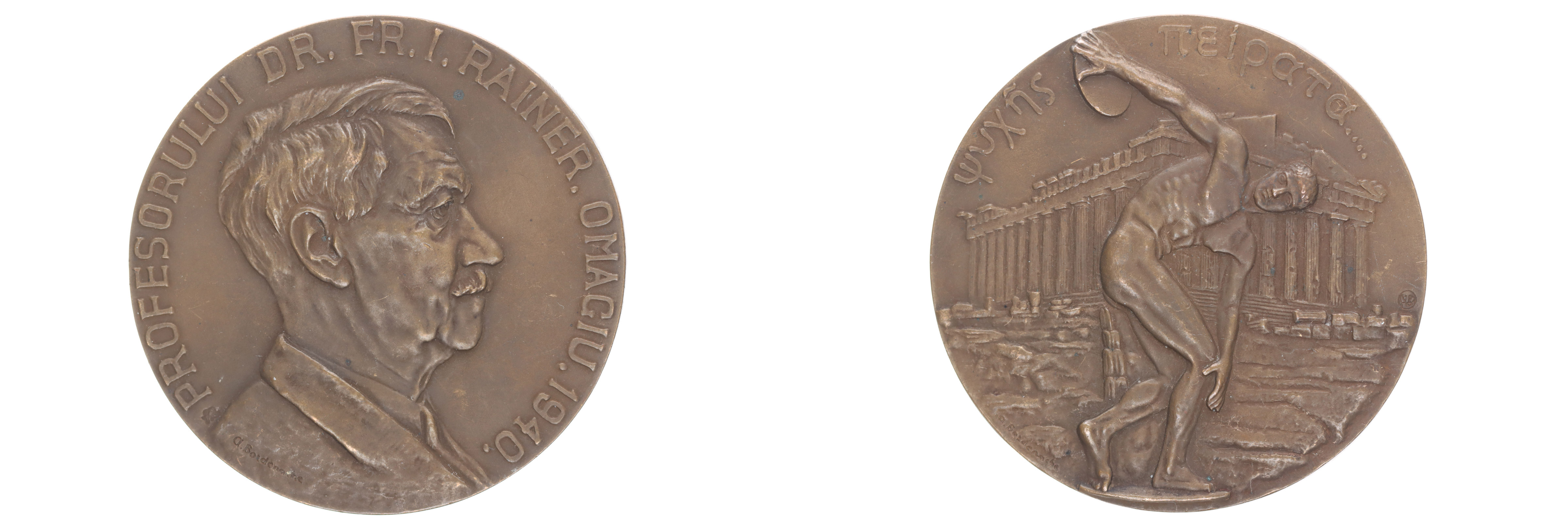 C.Boldenache - prof.dr. Fr.I.Rainer, Omagiu 1940 Portrét zprava, opis / diskobolos zprava před akropolé, řecký opis Sign., Bronz 80 mm, 164,03 g