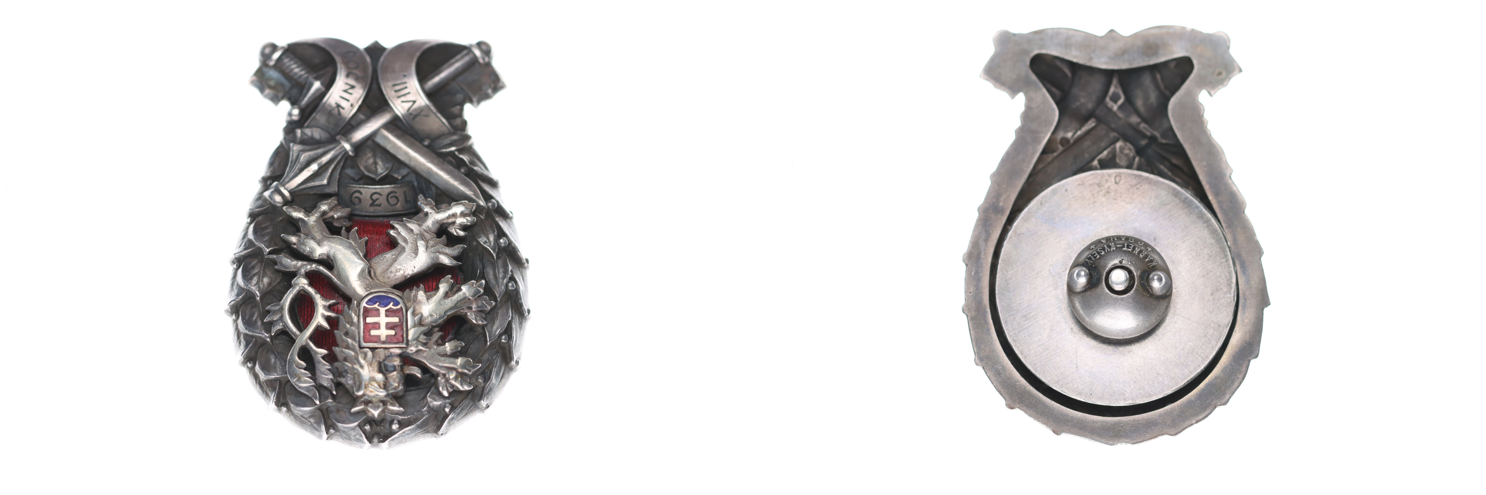 Absolv.odznak čs.vojenské školy 1939, XVIII.ročník znač.KK, Punc.900, Ag_šroub s maticí a podložkou